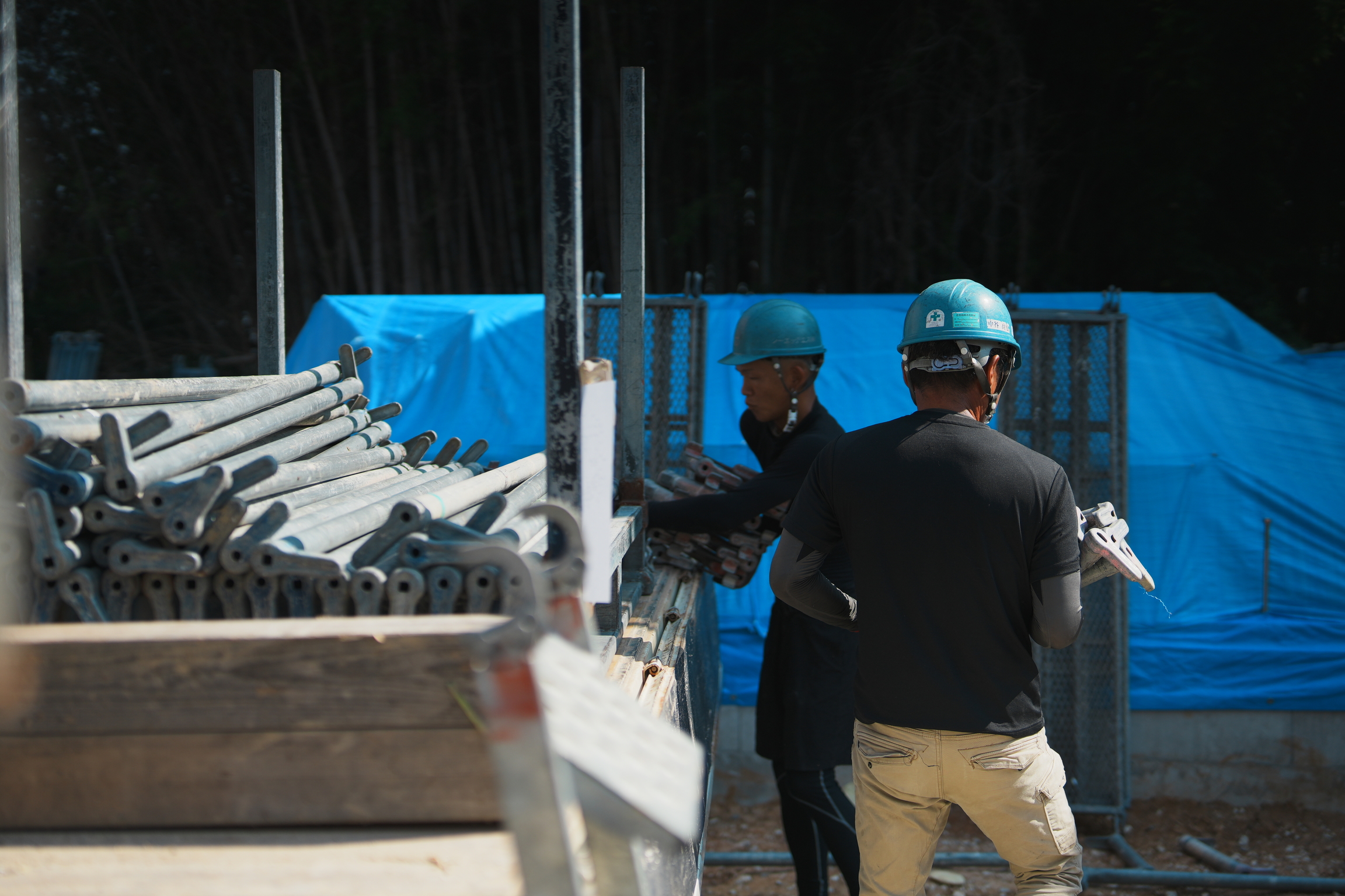 当社では、足場工事を「作業」ではなく「サービス」と捉えています。足場を組むことだけでなく、近隣の方々が安心して日常生活を送れる環境づくりまで含めて、足場工事だと考えています。